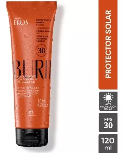 Protector solar de Natura con extracto de burití y fórmula mineral.